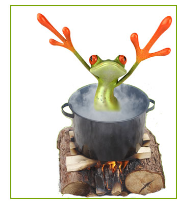 Imaginez une marmite remplie d’eau froide, dans laquelle nage tranquillement une grenouille. Le feu est allumé sous la marmite. L’eau se chauffe doucement. Elle est bientôt tiède. La grenouille trouve cela plutôt agréable et continue de nager. La température commence à grimper. L’eau est chaude. C’est un peu plus que n’apprécie la grenouille ; ça la fatigue un peu, mais elle ne s’affole pas pour autant. L’eau est maintenant vraiment chaude. La grenouille commence à trouver cela désagréable, mais elle est aussi affaiblie, alors elle supporte et ne fait rien. La température de l’eau va ainsi monter jusqu’au moment où la grenouille va tout simplement finir par cuire et mourir, sans jamais s’être extraite de la marmite.